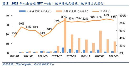 据钛媒体App了解,海外NFT市场中,二级市场NFT成交额远大于一级市场成交额,其占比高达80%,这也表明其市场已趋于成熟,金融属性明显,NFT产品的流通性更好。